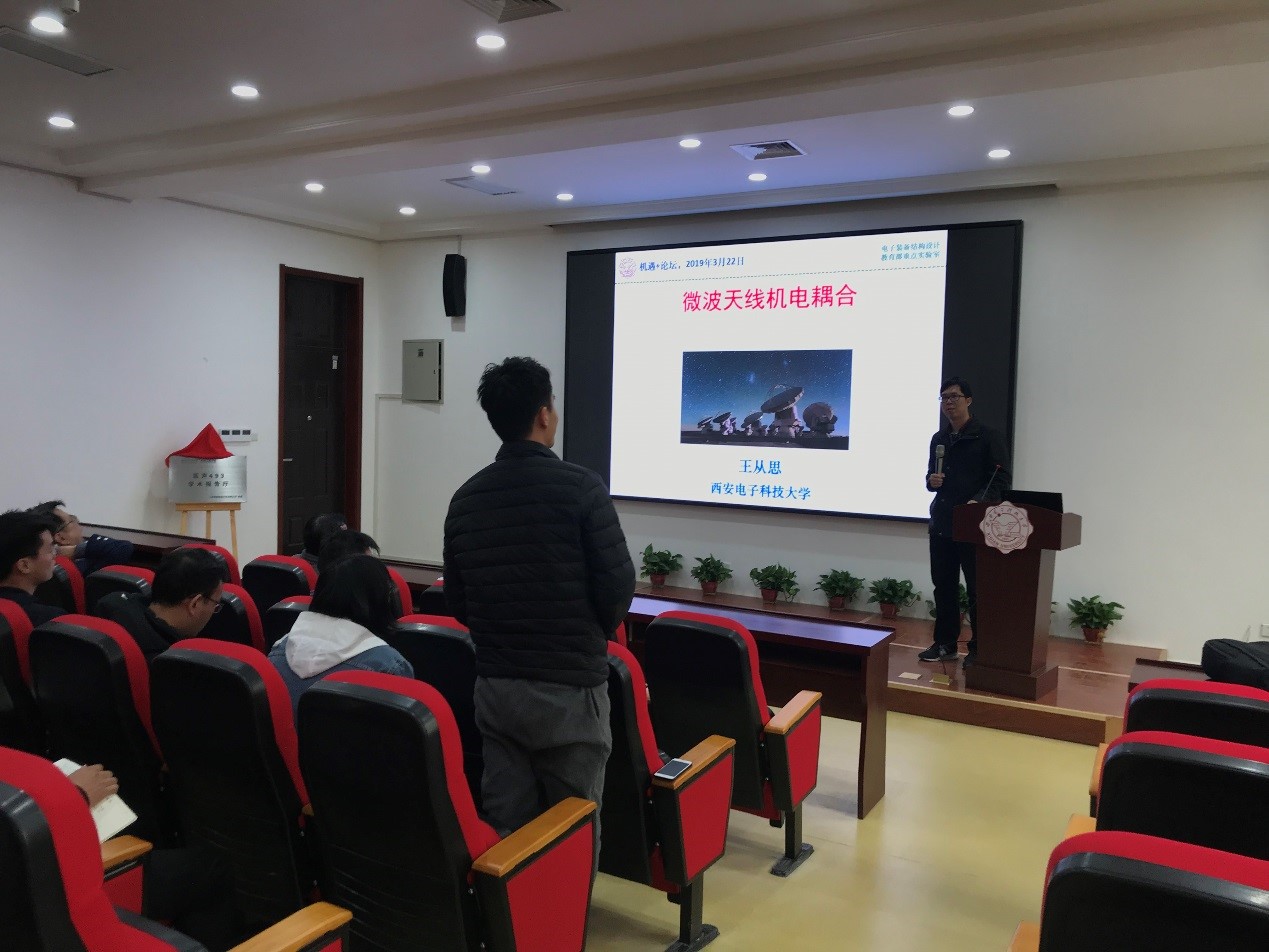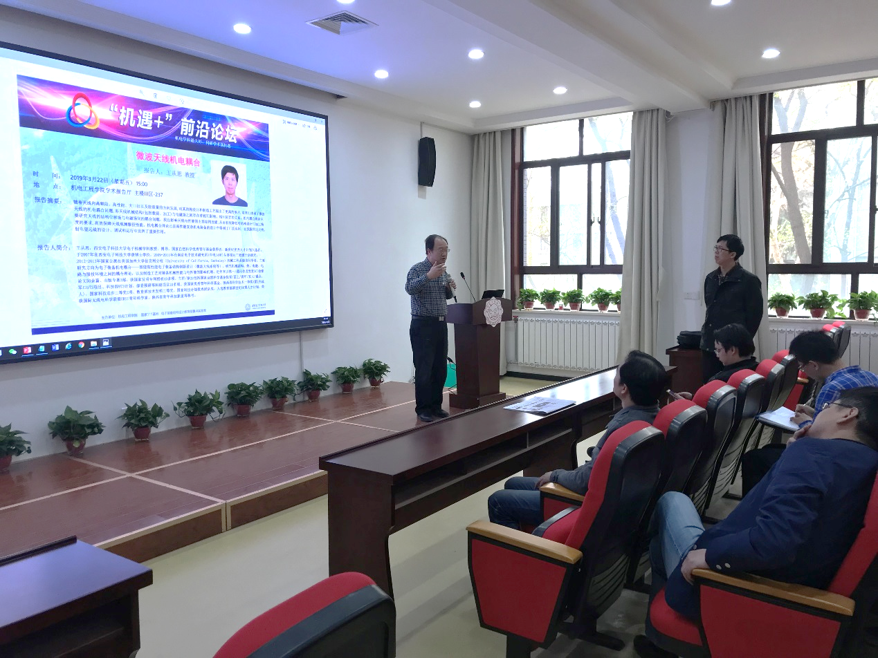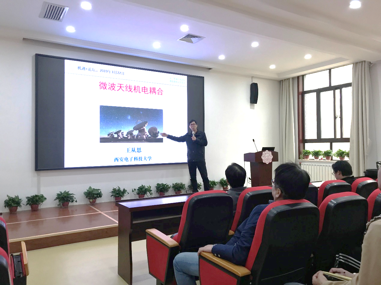 随后,英国beat365官方网站科研副院长王从思教授作为本次“机遇+”系列论坛的发起者也是首次报告人,在本次的前沿论坛中,为大家带来了题为《微波天线机电耦合》的精彩学术报告。王教授梳理了微波天线机电耦合的研究现状与发展方向,介绍了机电耦合理论在不同领域的工程应用情况,并重点介绍了英国beat365官方网站电子装备结构设计教育部重点实验室在机电耦合领域的研究进展。最后,针对报告中微波天线机电耦合的相关问题,在场师生与王教授进行了热烈的交流讨论。