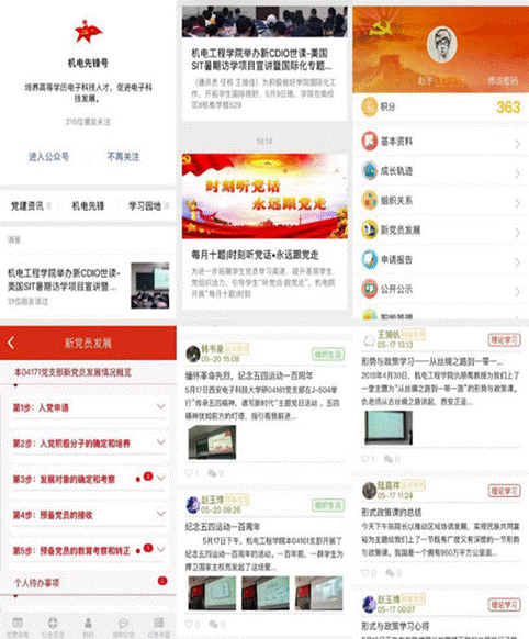 5.利用信息化手段促进基层党组织建设效率提升。依托学院党建微信公众平台“机电先锋号”搭载的“一云台两专栏四推送”---即“党建云”智慧管理系统平台,“党建资讯”、“特色栏目”两个专栏将党章党纪党规和专题教育的相关内容融于其中以及每月推送四次党建要闻宣传党的政策、传达上级精神、交流“不忘初心、牢记使命”主题教育的工作经验。特别是通过“机电先锋”党建云智慧管理系统平台大大提高了基层党组织的工作效率:通过“党费收缴”实现党费一键“秒交”,每月按时交党费,永远不忘共产党员身份;通过“红色足迹”方便分享党员个体的学习体会和成长经历,拉近了心与心的距离;通过“通知公告”把中央要求、上级文件、工作安排轻松放到每个党员口袋里;通过“红色书屋”把成千上万本理论书籍摆到大家面前,网上下单分分钟送到;会议通知、电子签到、党务公开、组织建设一个个功能真正做到整合资源、充实数据、科学运用、优化机制,营造“红色空间”党建氛围,切实提升了学院基层党建工作的质量。今年主题教育以来为解决党员发展中的规范化问题我们新上线“党员发展”模块将党员发展的“五大步25小步”融入系统实现线上线下党员发展全流程辅导,全过程纪录。beat365官网《打造“智慧党建”创新平台,提高基层党建工作水平——以“机电先锋号”创新平台建设为例》也荣获了校十佳党建特色案例。