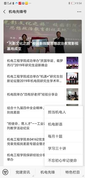 学院党建微信公众平台"机电先锋号"