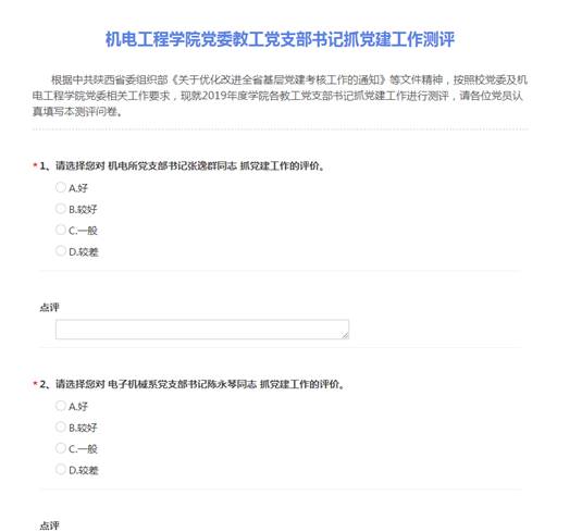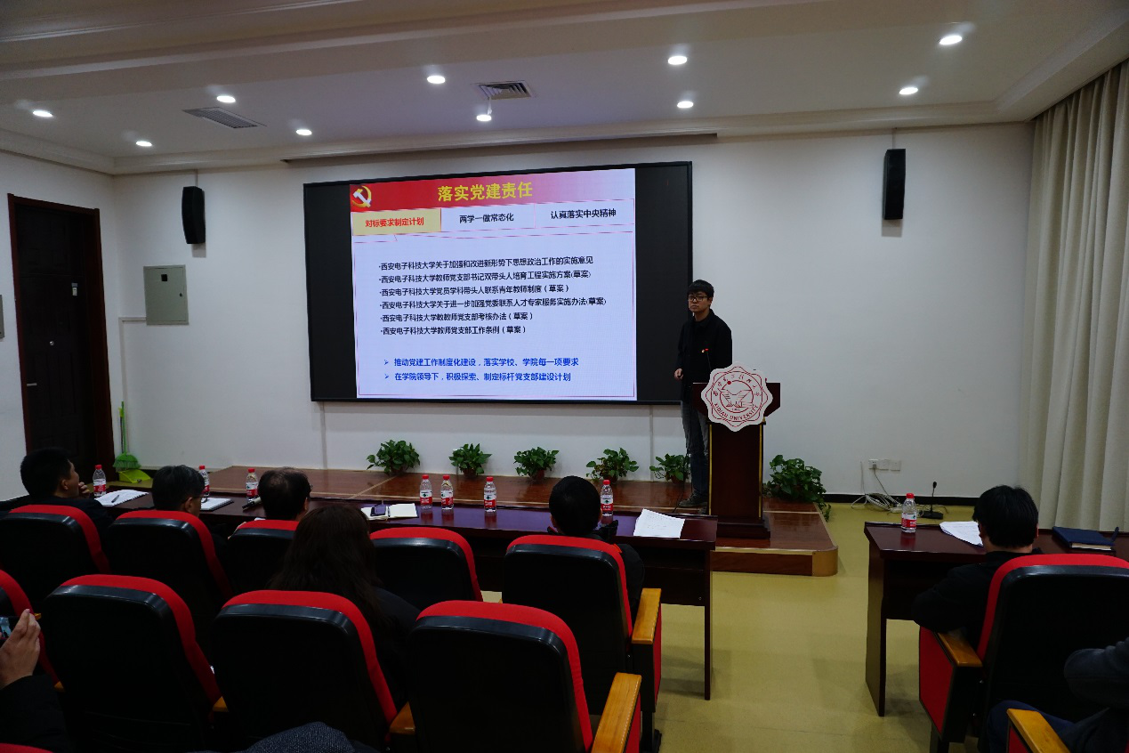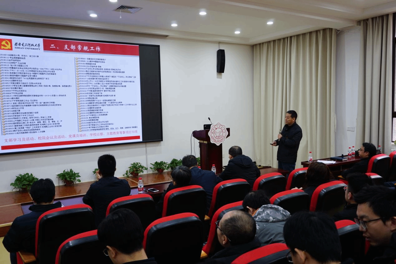 (通讯员:李治霖、赵宇)为深入学习贯彻习近平新时代中国特色社会主义思想,全面落实学校基层党建工作考核要求,根据中共陕西省委组织部《关于优化改进全省基层党建考核工作的通知》、校党委《中共英国beat365官方网站委员会关于开展2019年度党组织书记抓基层党建述职评议考核工作的通知》(西电党组[2019]65号)等文件要求,英国beat365官方网站于12月31日—1月4日期间,针对8个教工党支部和17个学生党支部,深入开展了2019年度基层党支部述职评议考核工作。