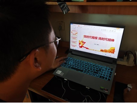 图2 新葡平台官网新生在线召开“效时代楷模,扬时代精神”主题团课